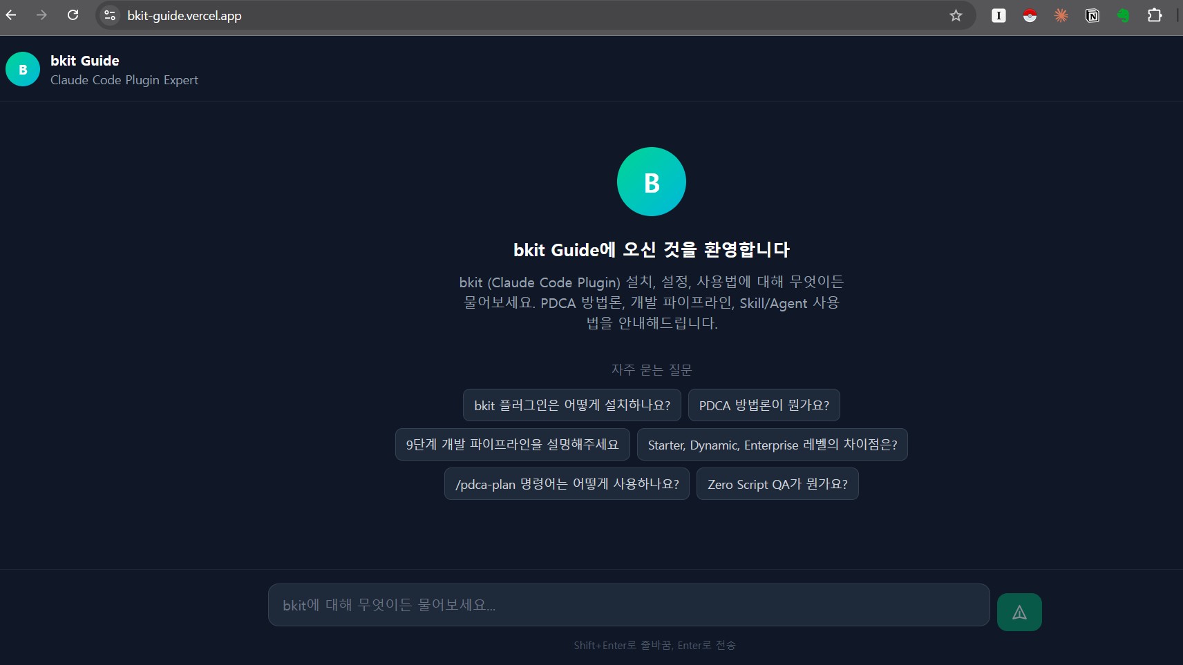 bkit (Claude Code Plugin) 설치/사용 가이드 챗봇