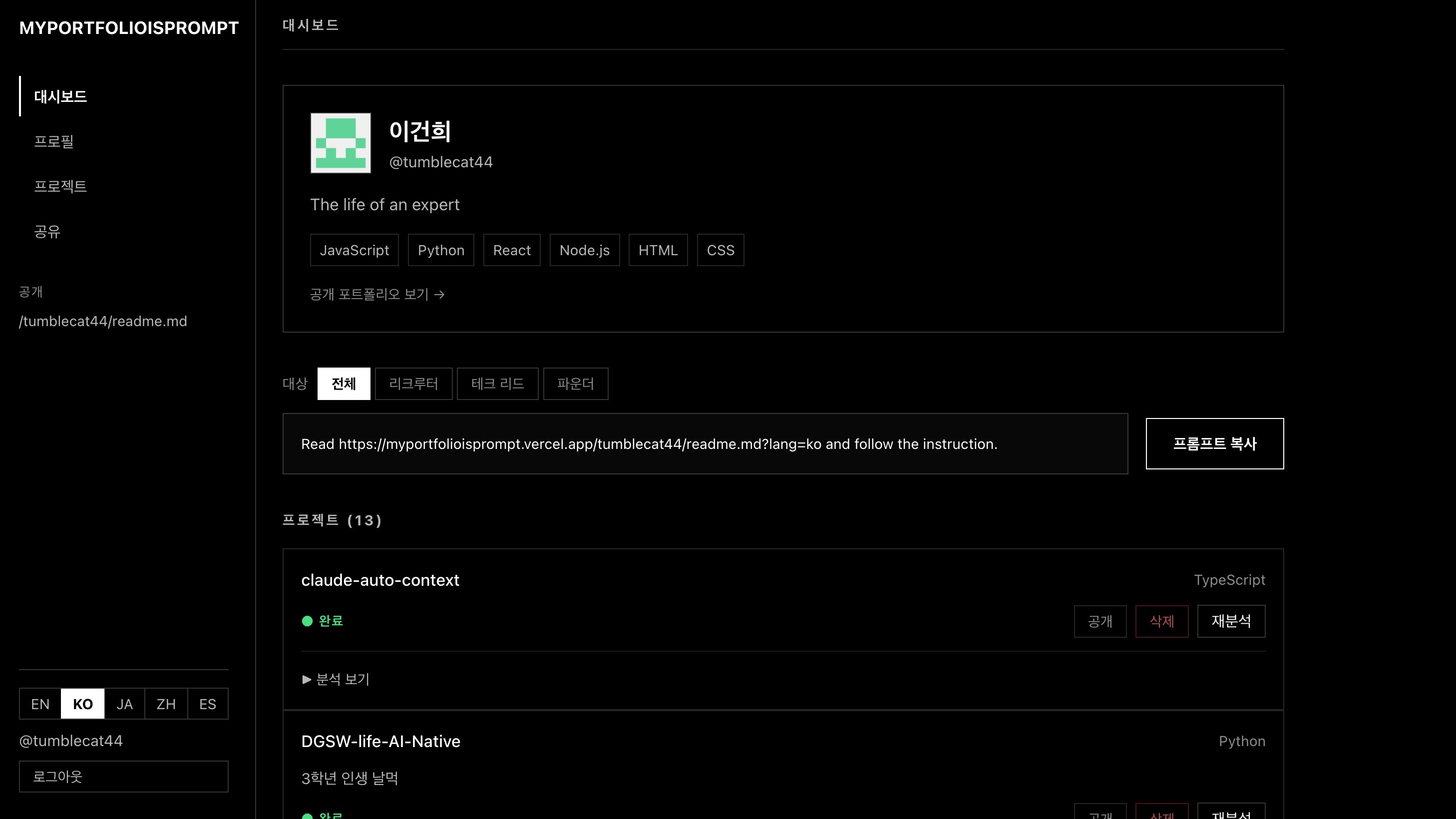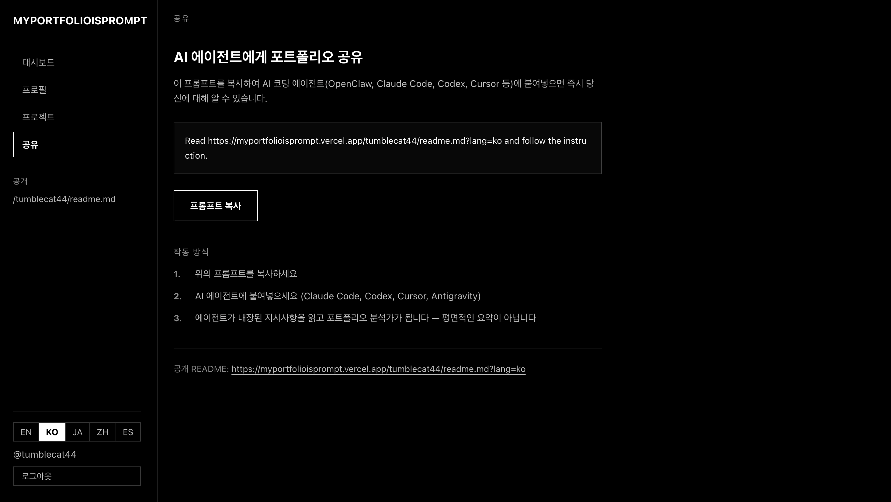 포트폴리오를 프롬프트 한줄로 바꾸는 서비스