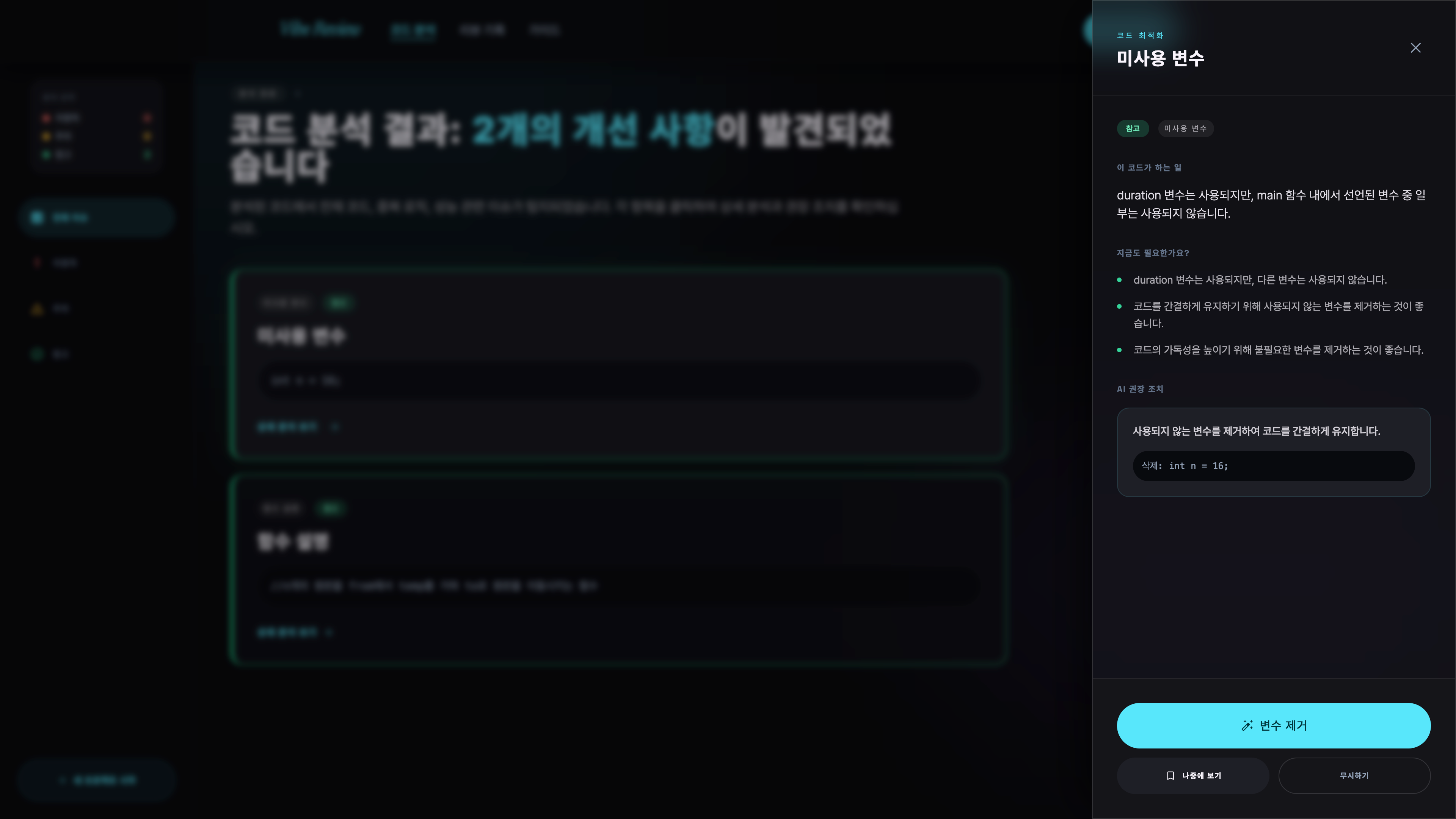Detects residual code, duplicate logic, and unused code, and suggests directions for cleanup.