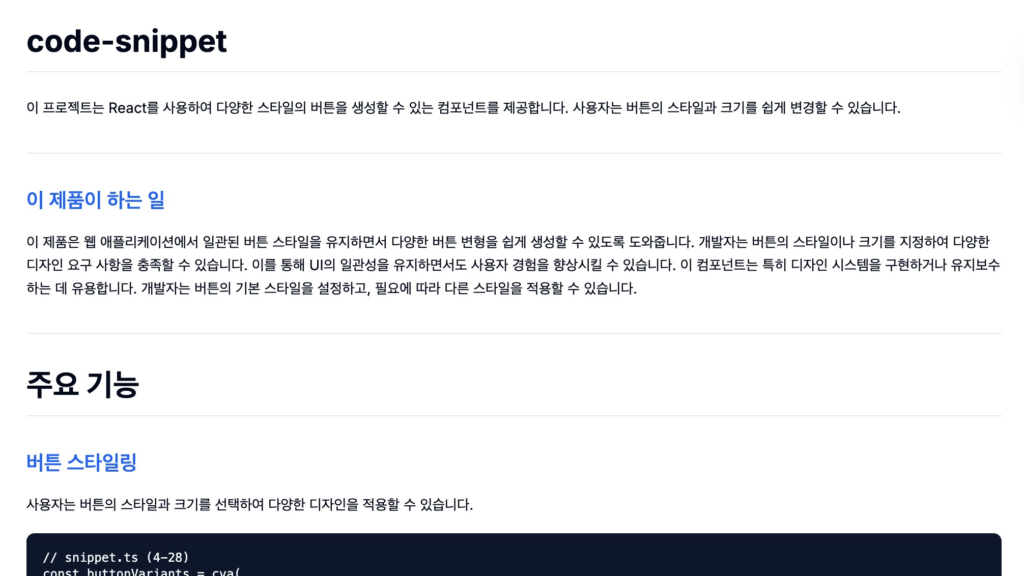 복잡한 코드를 비개발자가 이해할 수 있는 한글 제품 설명서로 자동 변환하는 서비스입니다.