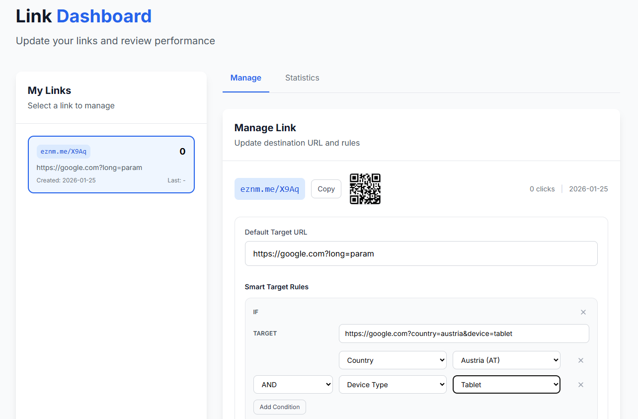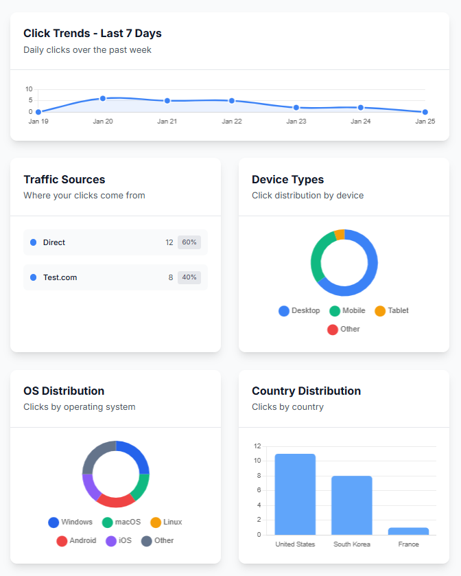 Il s'agit d'une solution de raccourcissement d'URL similaire à Bitly. C'est le seul service de ce type offrant gratuitement le routage par pays, appareil et système d'exploitation, ainsi que des statistiques détaillées. Toutes les fonctionnalités sont gratuites, sans aucun abonnement payant.