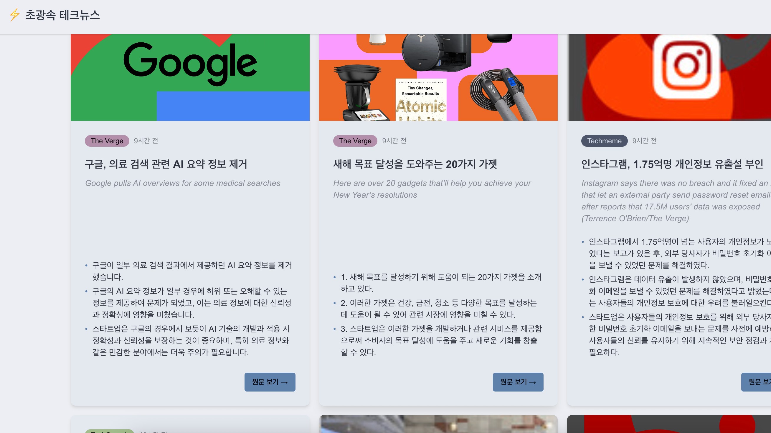 해외 테크 소식을 10분마다 크롤링해서 스타트업 관점으로 3줄 요약해주는 서비스