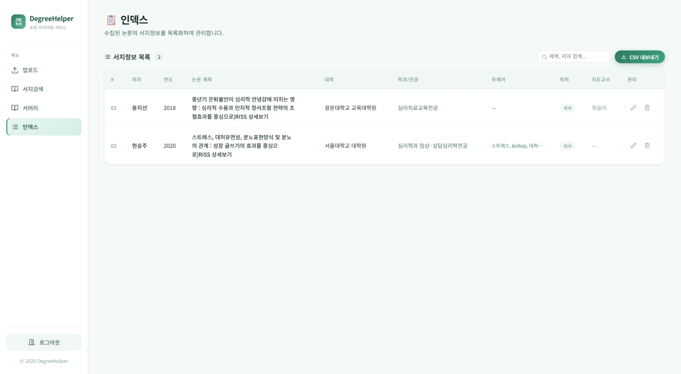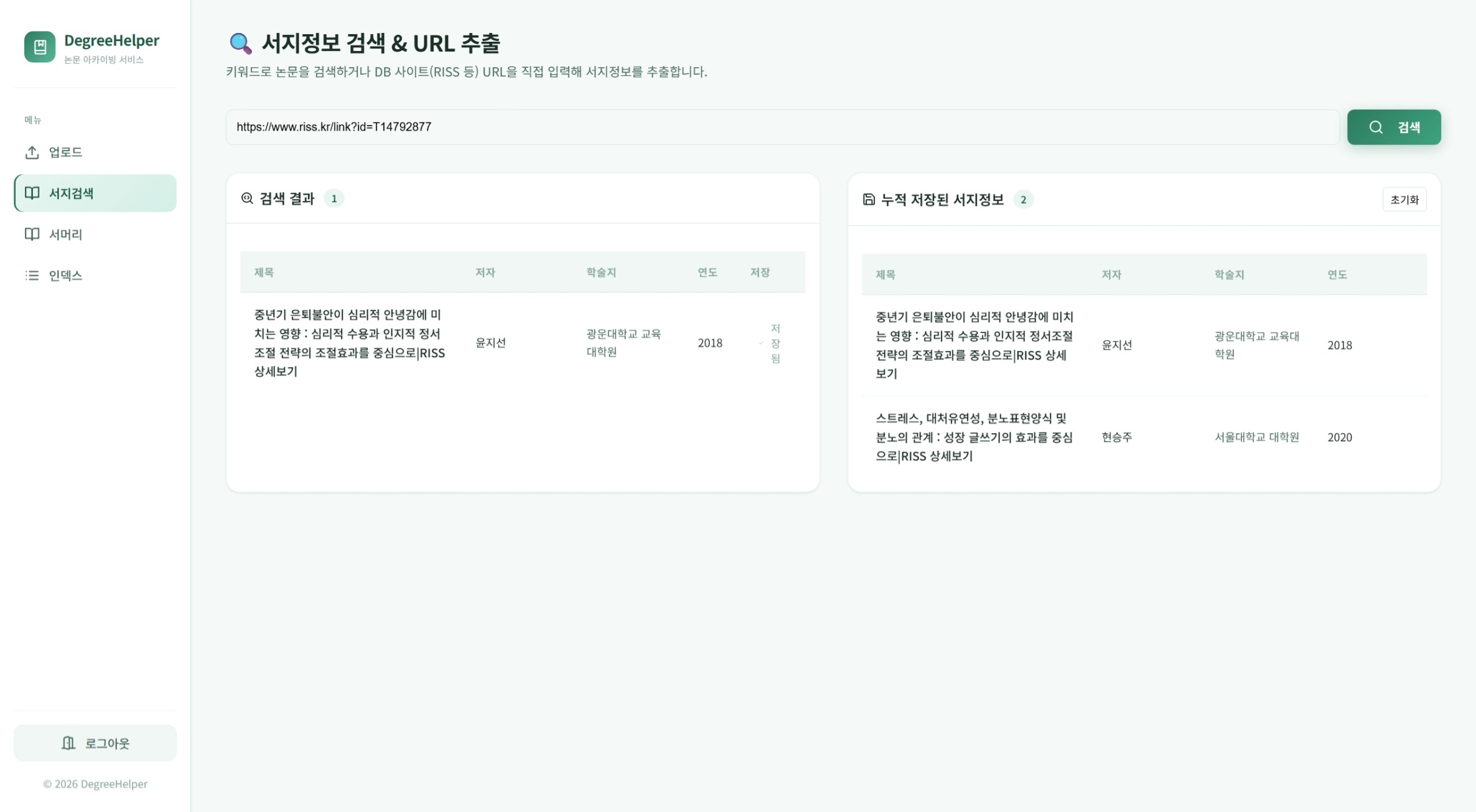 논문집필 초보자를 위한 검토논문 서지 정보 DB화 서비스